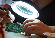 Инженер нашего сервисного центра исполняет ремонт: заменяет поломанную деталь исправной фирменной деталью